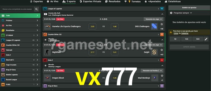 A aposta vx777 oferece aos jogadores a experiência mais conveniente de apostas em eSports!